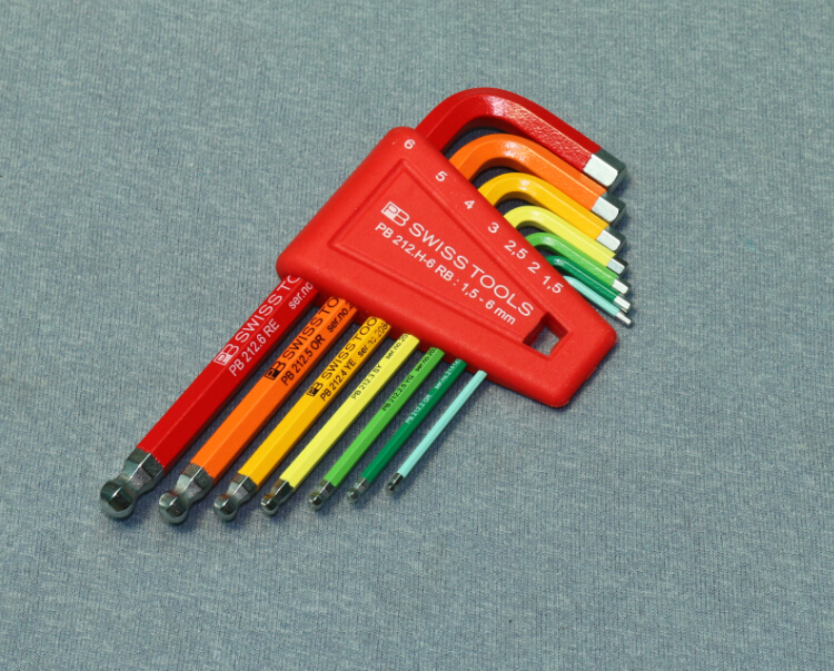 6件套装原装进口瑞士PB彩色1.5-5mm球头内六角扳手PB 212.H-5 RB