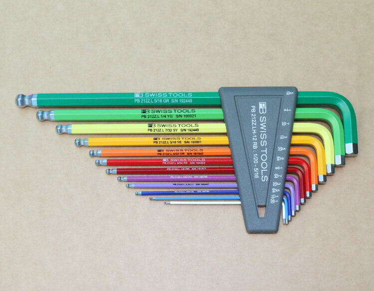 瑞士PB SWISS TOOLS彩色12支英制套装加长球头内六角扳手PB 212ZL.H-12 RB