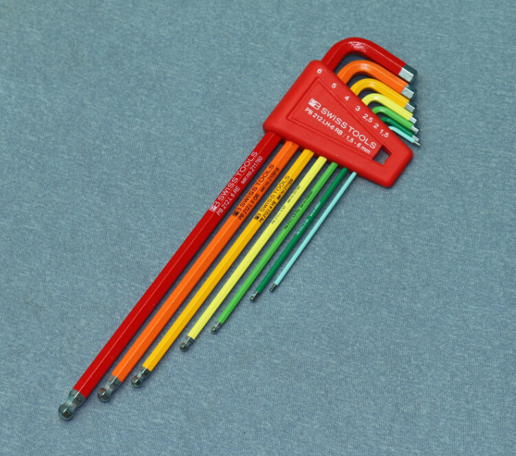 7件套装原装进口瑞士PB彩色1.5-6mm球头内六角扳手PB 212.H-6 RB