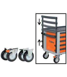 四个直径125毫米的脚轮 2 个固定脚轮和2个转向轮(两个脚轮带制动器); 伸缩手柄: