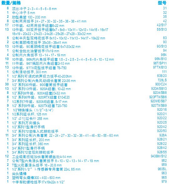 316件装,汽车维护用组套