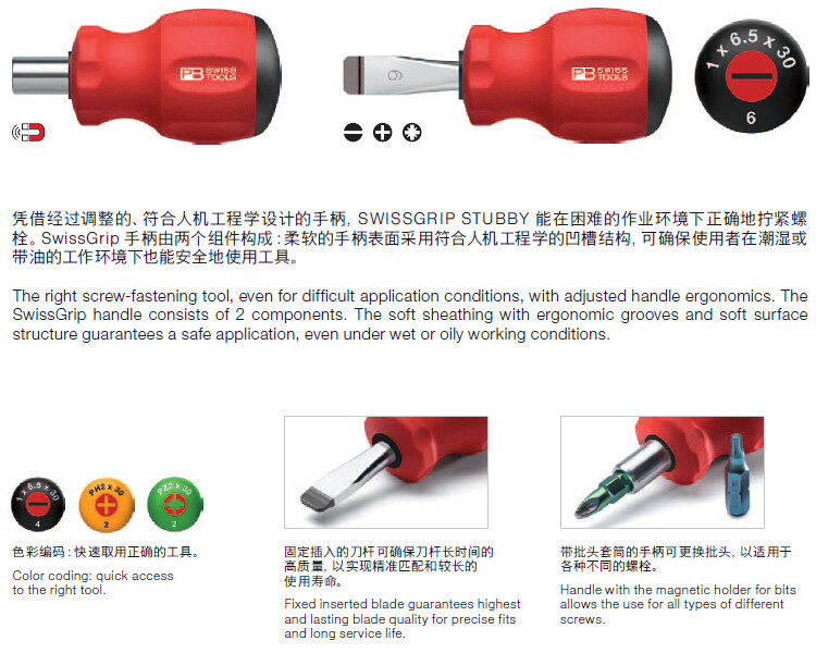 瑞士PB SWISS TOOLS短手柄十字螺丝刀 改锥 PB 8195 系列
