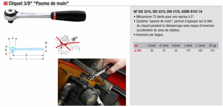 法国FACOM工具 3/8”方掌控棘轮扳手 J.161