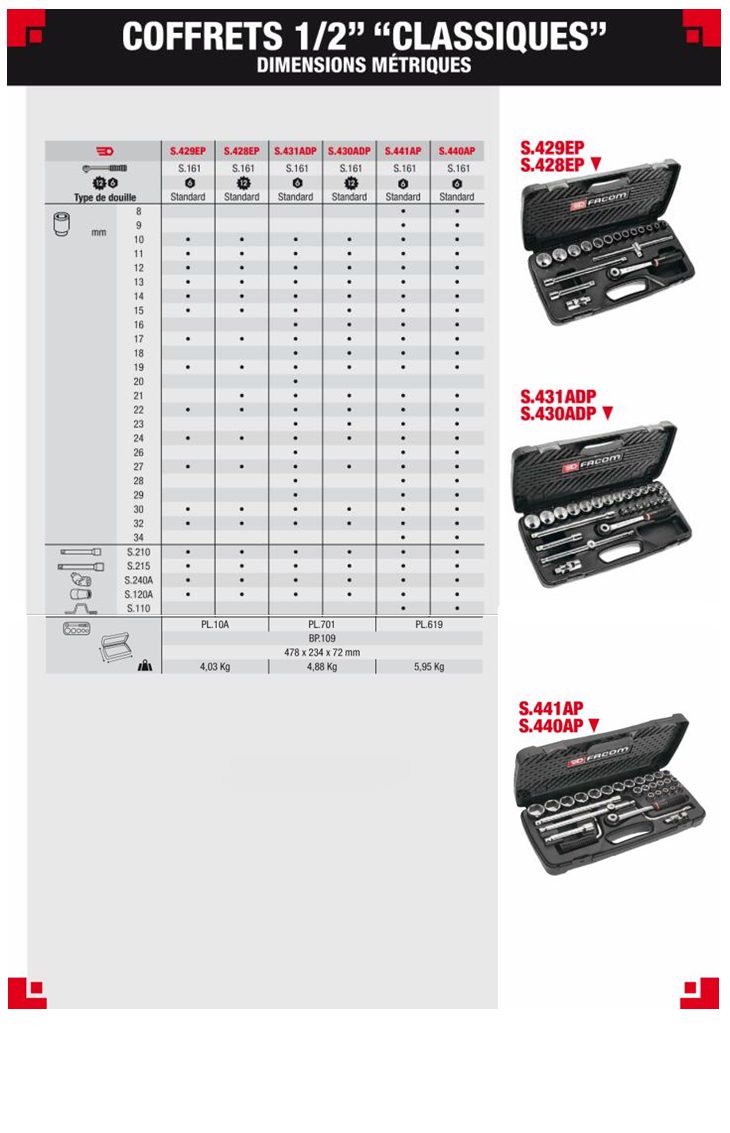 法国FACOM工具 1/2”方标准公制套筒扳手套装
