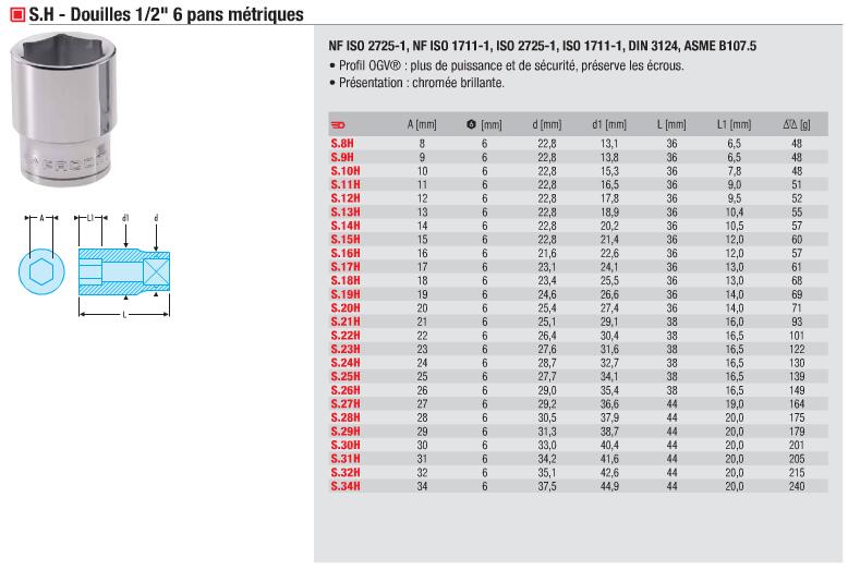 法国FACOM工具 1/2”方公制6角套筒