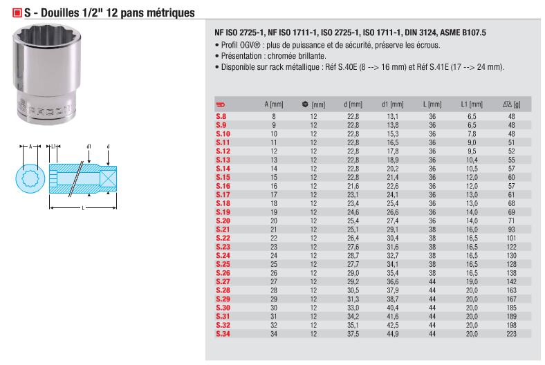 法国FACOM工具 1/2”方公制12角套筒