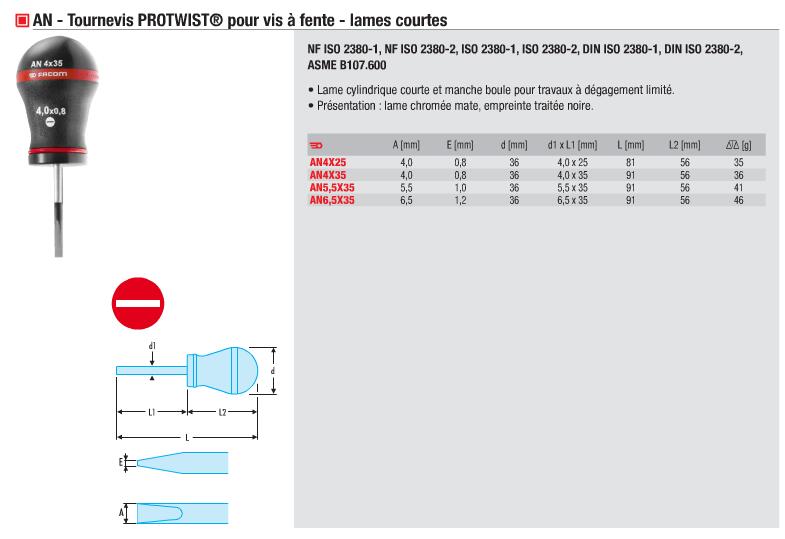 法国FACOM工具 AN系列短柄短刀头一字螺丝刀