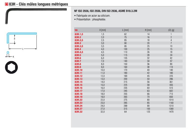 法国FACOM工具 83H系列 长柄平头公制内六角扳手