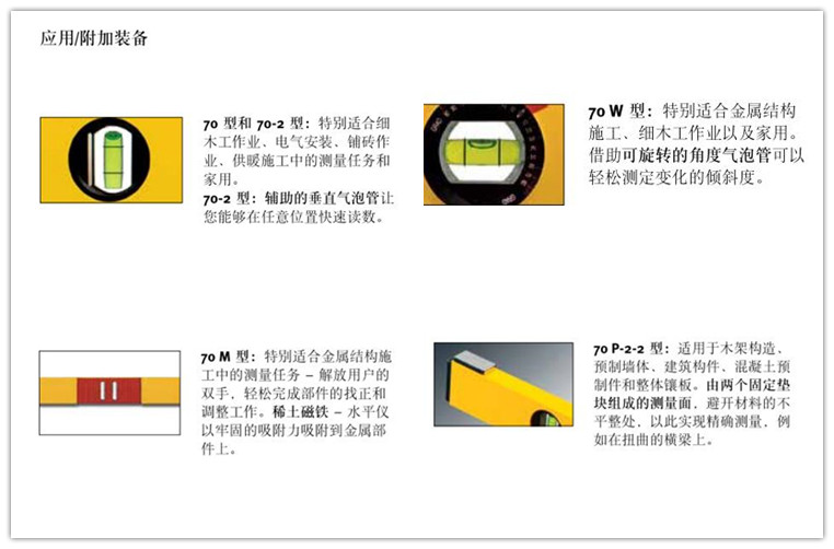 ● 水平仪有两个测量面 - 可以在任意位置精确测量