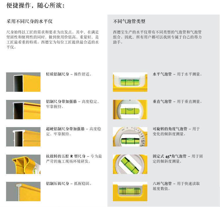 ● 水平仪有两个测量面 - 可以在任意位置精确测量