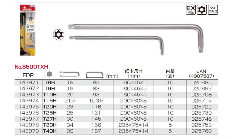 ●钢材"EX钢金"(整体热处理)日本产。 ●也可用于中孔梅花螺钉。