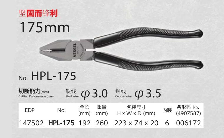 日本 VESSEL威威工具 螺丝钳 HSP-175