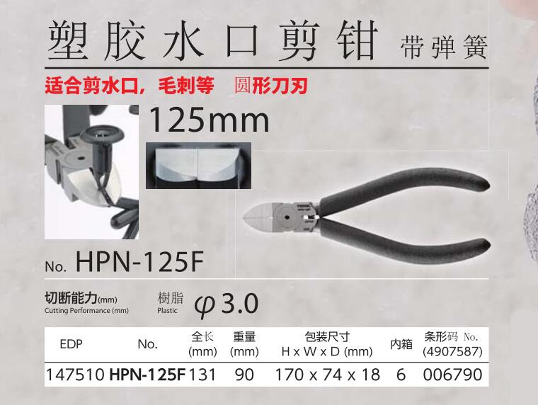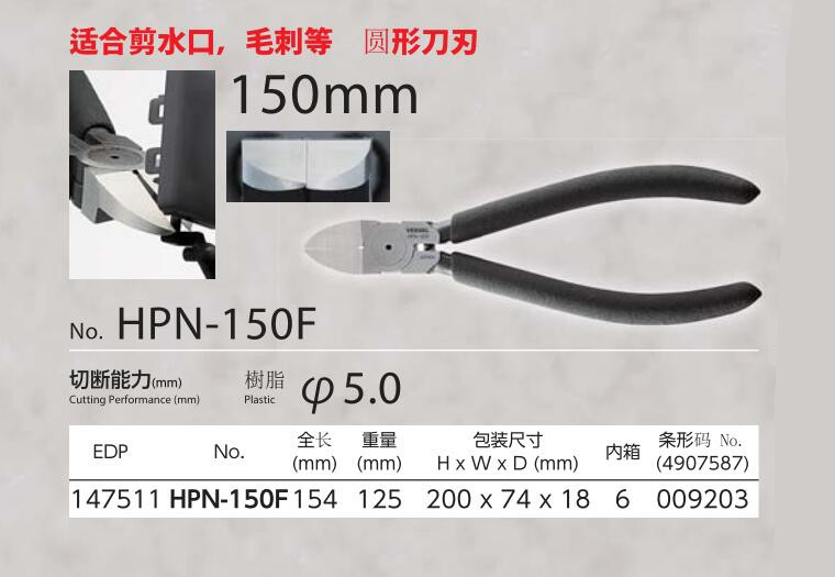 日本 VESSEL威威工具 水口钳 塑胶剪钳 HPN-125F/150F