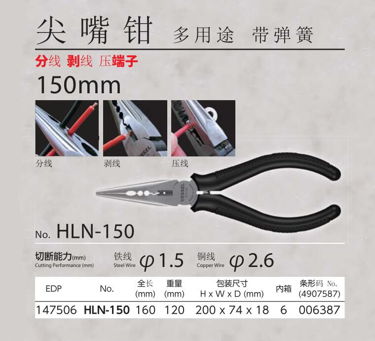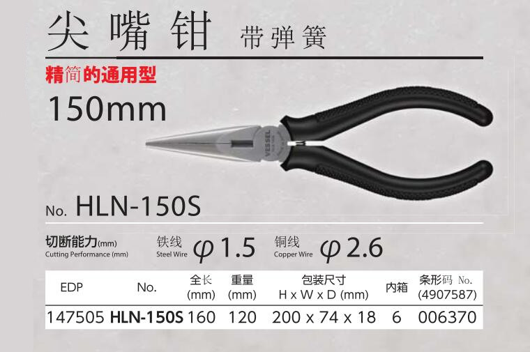 日本 VESSEL威威工具 6寸尖嘴钳 多用途尖嘴钳