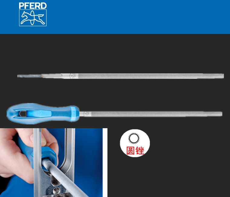 圆形锉,带锉柄和圆周齿,符合DIN 7261标准的F 形。适用于作业在半径轮廓或者是内径剖面的锉磨。