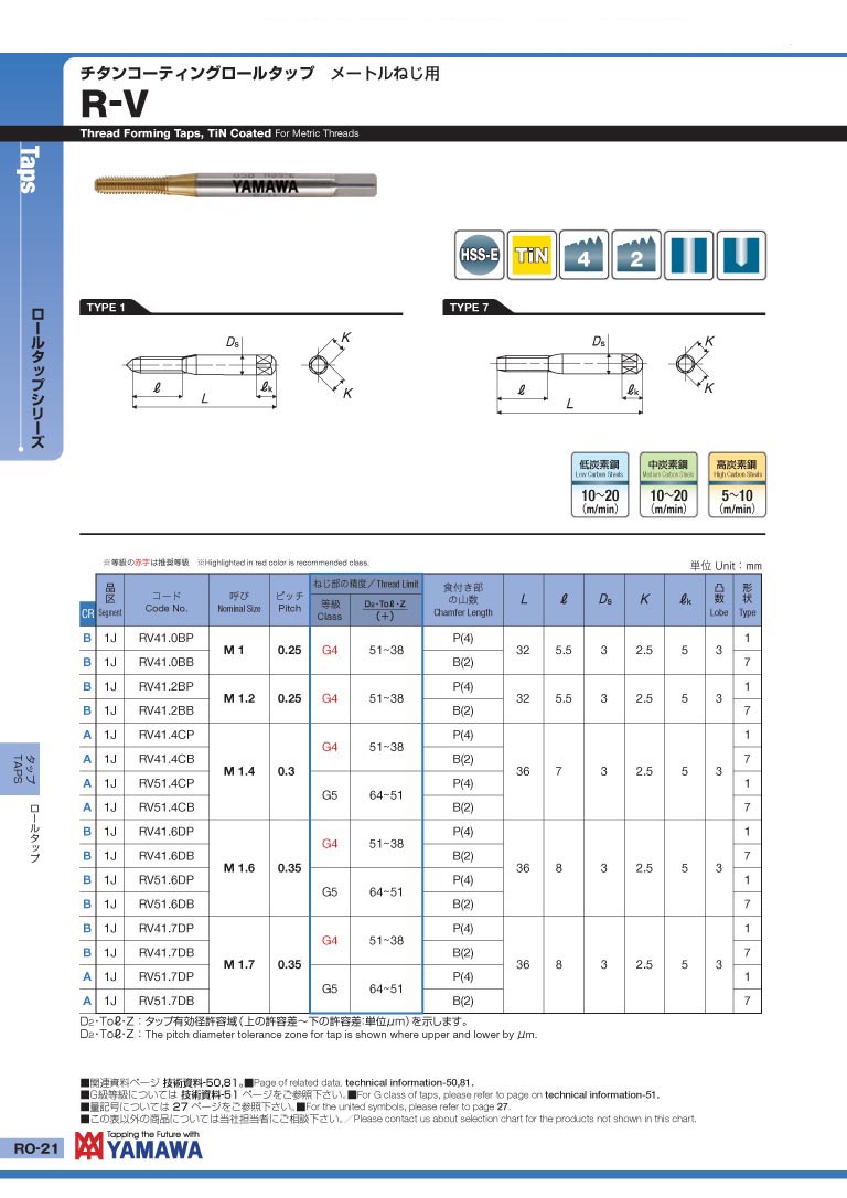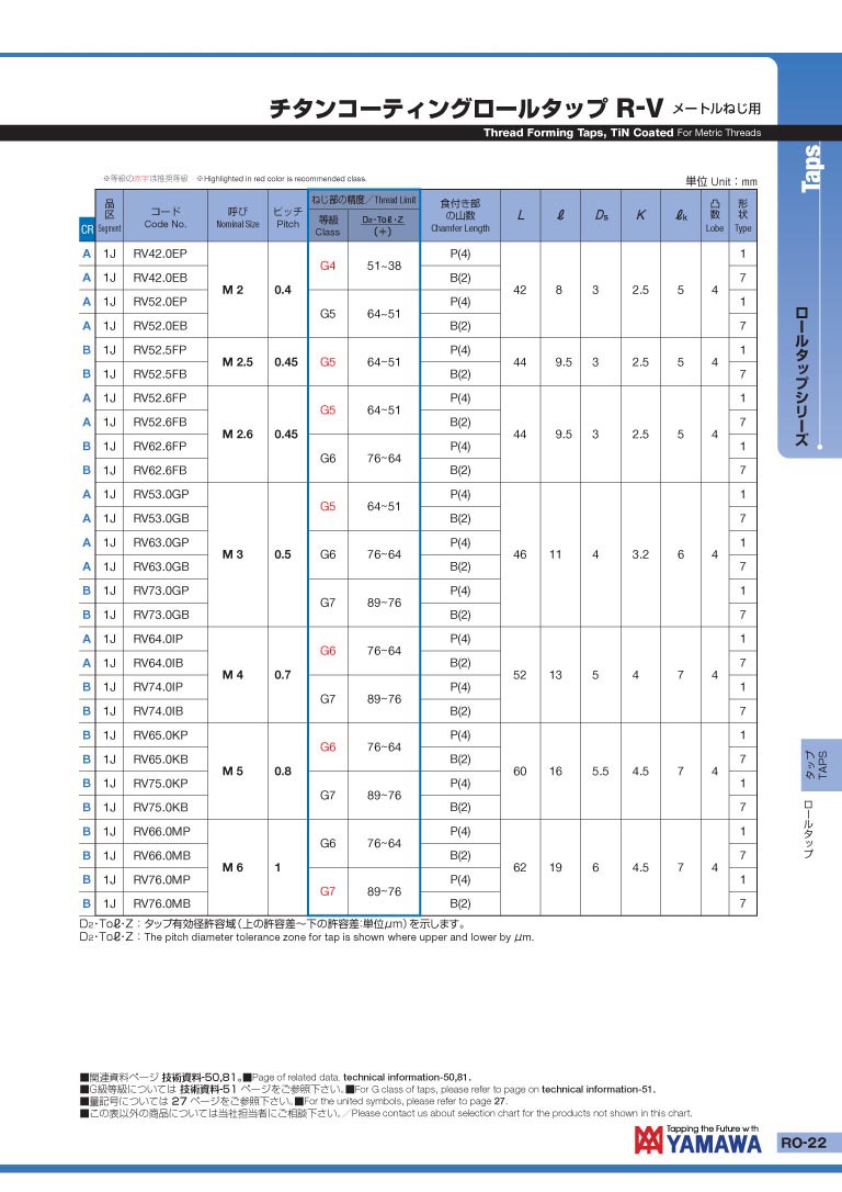 日本 YAMAWA 镀钛挤压丝攻 R-V