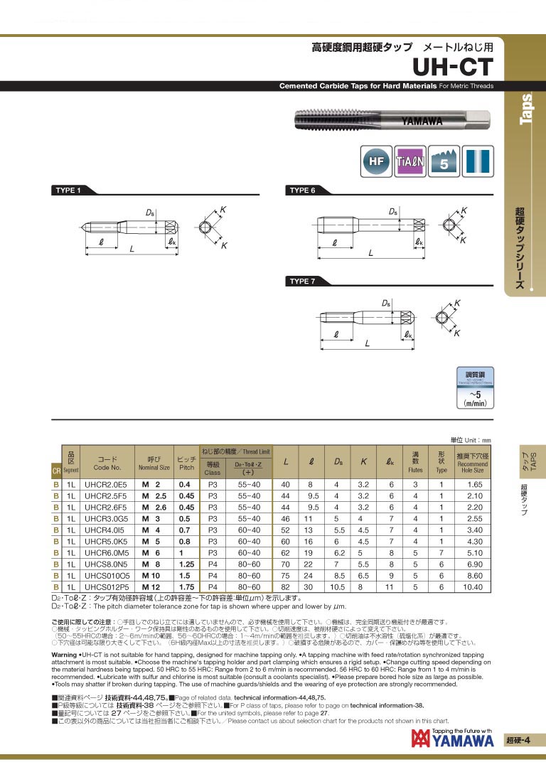 日本 YAMAWA 高硬度钢用超硬丝攻 UH-CT