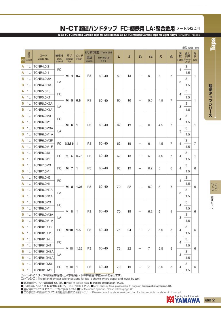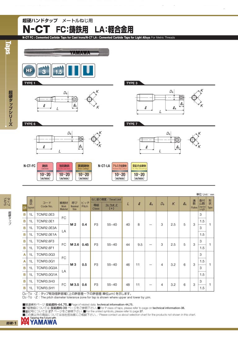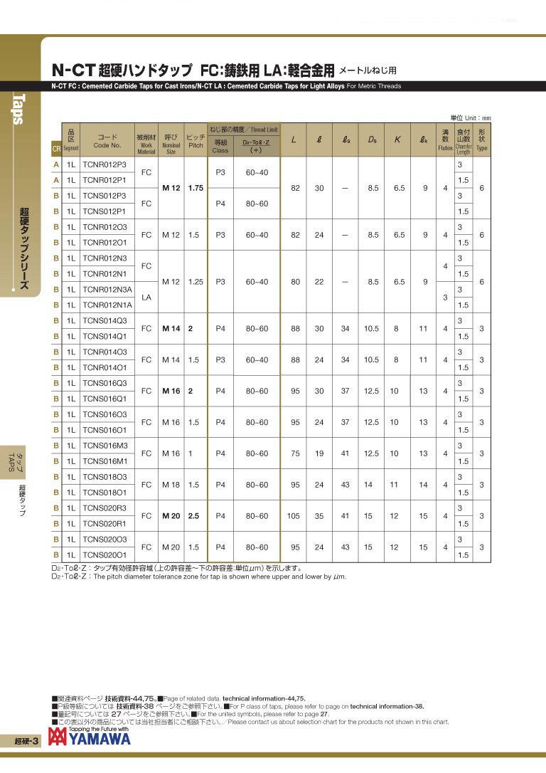 日本 YAMAWA 铸铁.轻合金用超硬丝攻 N-CT (FC) (LA)