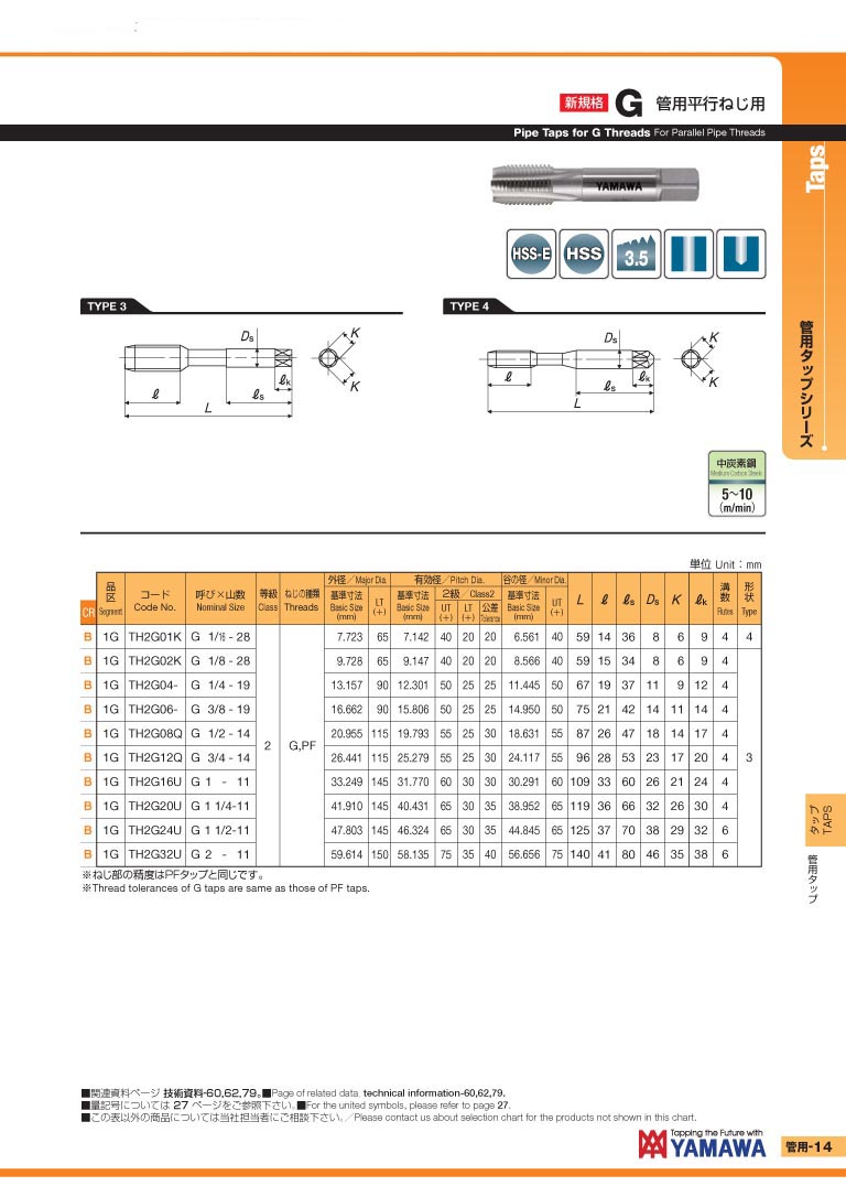 日本 YAMAWA 直槽式新标ISO直牙管用丝攻 G