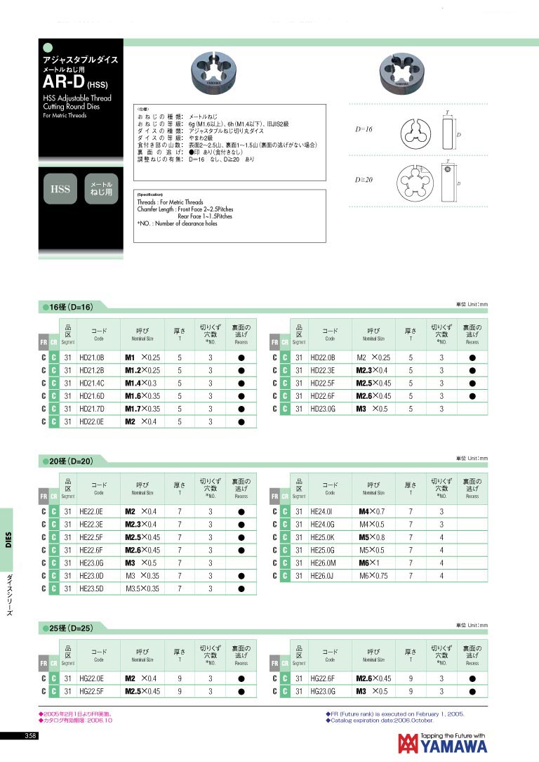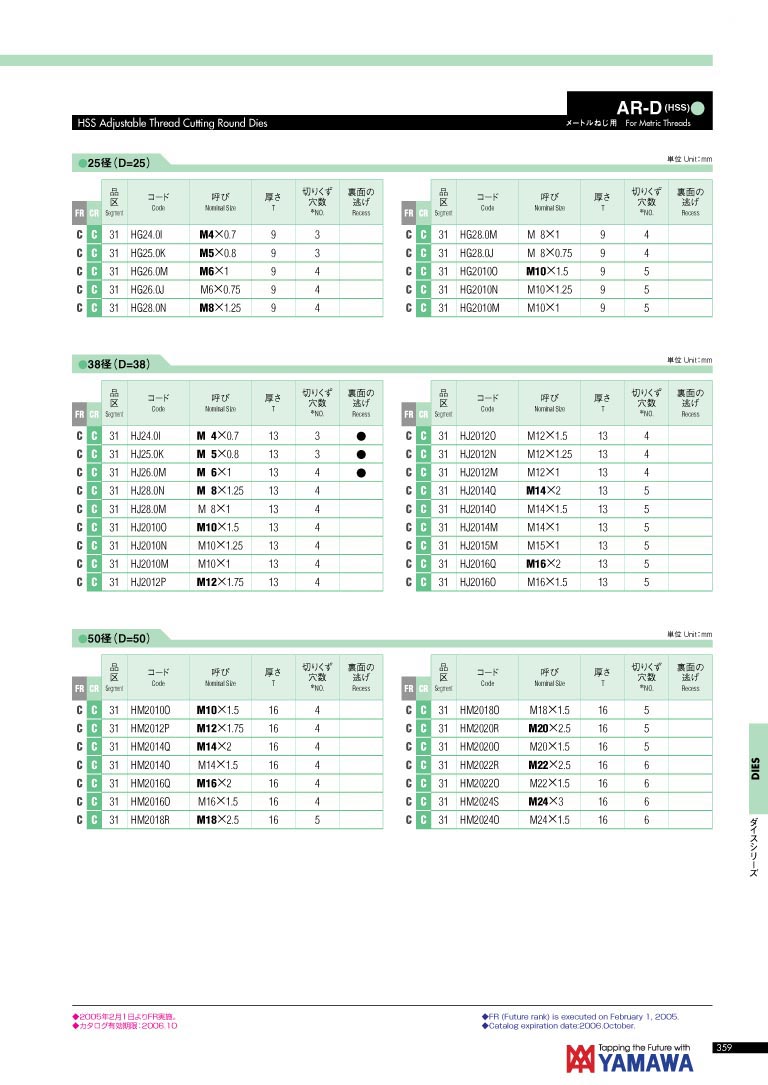 日本 YAMAWA 高速钢可调式板牙 AR-D(HSS)
