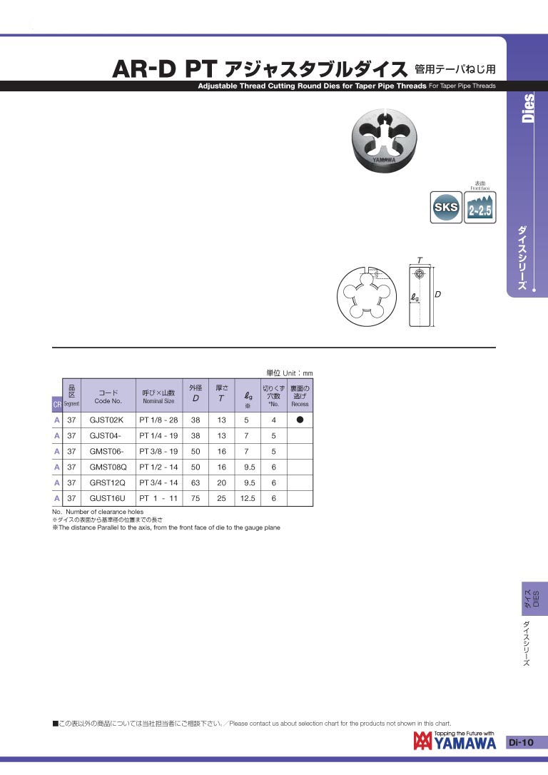日本 YAMAWA 日标锥度牙管用板牙 AR-D PT